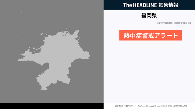環境省と気象庁は、明日7月22日を対象とした熱中症警報アラートを福岡県に対して発表しました。外出はなるべく避け、室内をエアコン等で涼しい環境にして過ごしてください。