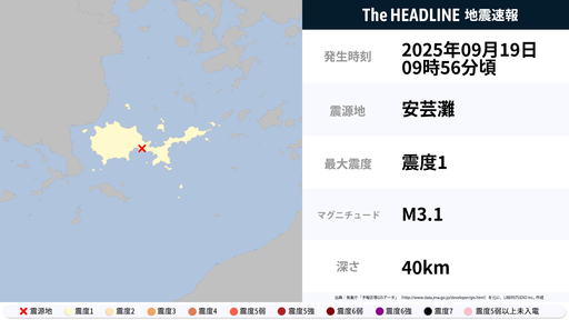 9月19日9時56分頃、安芸灘を震源とするマグニチュード3.1の地震が観測された。最大震度1を観測したのは、山口県。観測が発表されている主な地域は、以下の通り ▽震度1山口県東部また、気象庁はこ...
