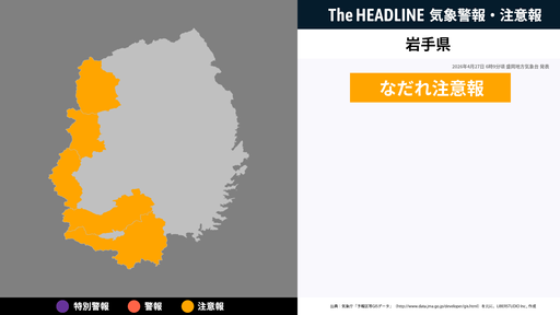 4月27日6時9分頃、岩手県のなだれ注意報が更新