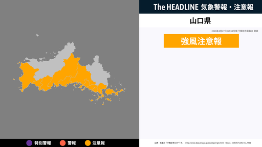 4月27日5時56分頃、和歌山県に強風注意報・波浪注意報が発表