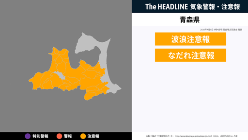 4月8日6時4分頃、青森県に波浪注意報・なだれ注意報が発表