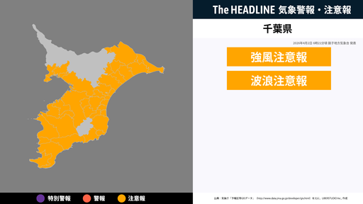 4月2日6時21分頃、千葉県に強風注意報・波浪注意報が発表