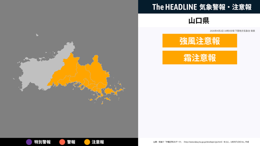 4月2日10時3分頃、山口県に強風注意報・霜注意報が発表