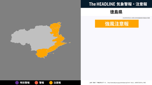 4月3日21時10分頃、徳島県に強風注意報が発表