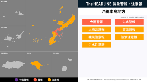 4月7日7時32分頃、沖縄本島地方に大雨警報・洪水警報などが発表