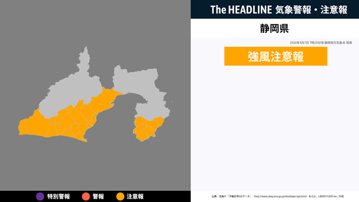4月7日7時25分頃、静岡県に強風注意報が発表