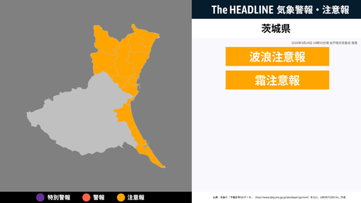 4月24日14時53分頃、茨城県に波浪注意報・霜注意報が発表