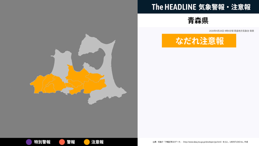 4月28日4時6分頃、青森県のなだれ注意報が更新