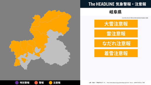 1月3日9時42分頃、岐阜県の大雪注意報・雷注意報などが更新