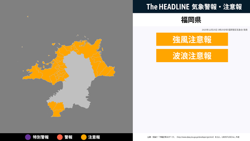 12月25日3時25分頃、福岡県に強風注意報・波浪注意報が発表