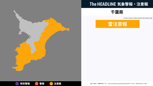 12月28日19時50分頃、千葉県に雷注意報が発表