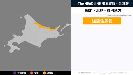 4月11日22時6分頃、網走・北見・紋別地方に強風注意報が発表