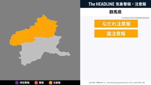 4月3日14時27分頃、群馬県になだれ注意報・霜注意報が発表