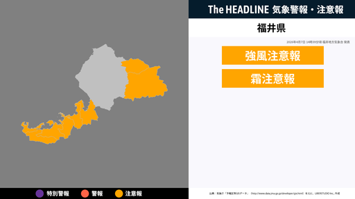 4月7日14時39分頃、福井県に強風注意報・霜注意報が発表
