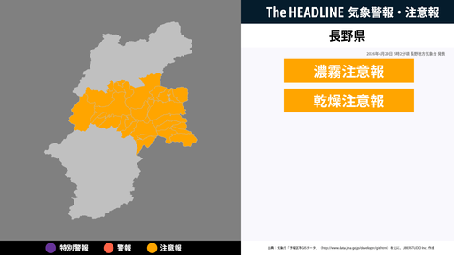 4月29日5時2分頃、長野県に濃霧注意報・乾燥注意報が発表