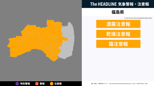 4月28日3時19分頃、福島県に濃霧注意報・乾燥注意報などが発表