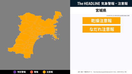 3月11日6時4分頃、宮城県に乾燥注意報・なだれ注意報が発表