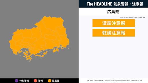 3月11日7時4分頃、広島県に濃霧注意報・乾燥注意報が発表