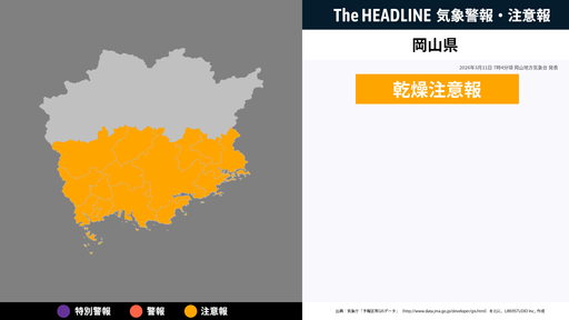 3月11日7時4分頃、岡山県に乾燥注意報が発表