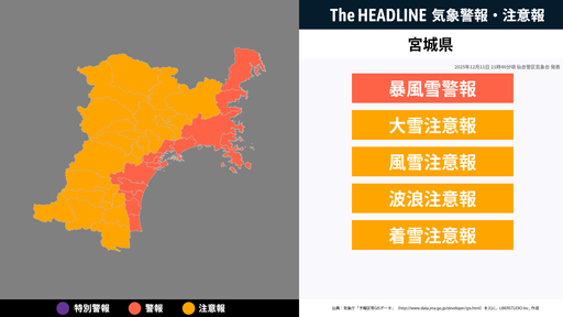 11月1日4時40分、宮城県の土砂災害警戒情報が解除された