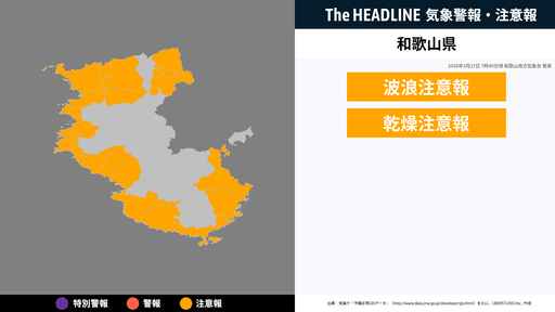 3月27日7時40分頃、和歌山県に波浪注意報・乾燥注意報が発表