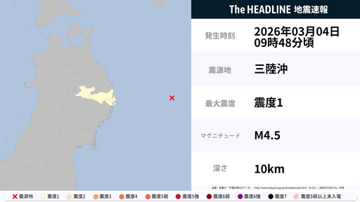 3月4日9時48分頃、岩手県で最大震度1の地震を観測