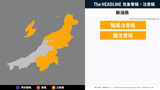 11月16日20時37分頃、新潟県に強風注意報・霜注意報が発表