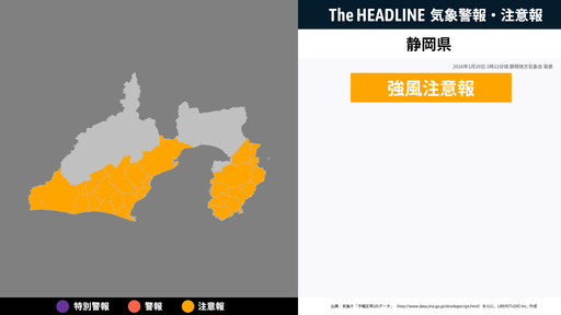 1月20日1時12分頃、静岡県の強風注意報が更新