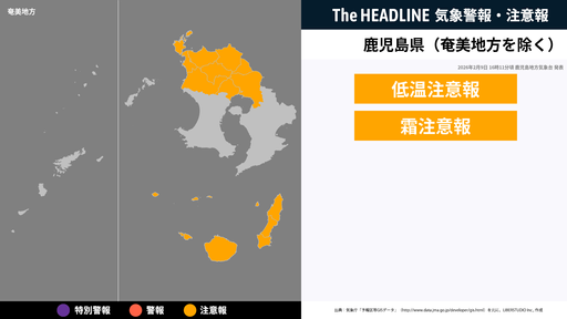 2月9日16時11分頃、鹿児島県(奄美地方除く)に低温注意報・霜注意報が発表