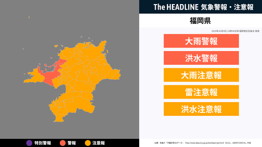 10月4日13時38分頃、福岡県に大雨警報・洪水警報などが発表
