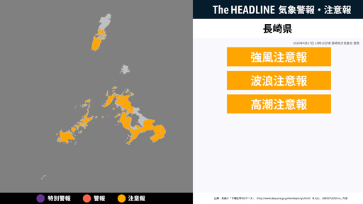 4月17日13時12分頃、長崎県に強風注意報・波浪注意報などが発表