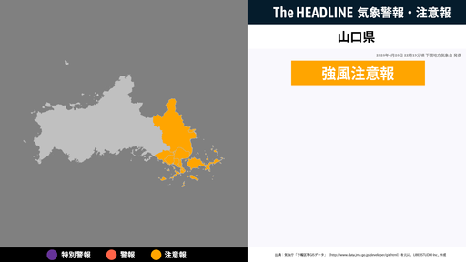 4月26日22時19分頃、山口県に強風注意報が発表
