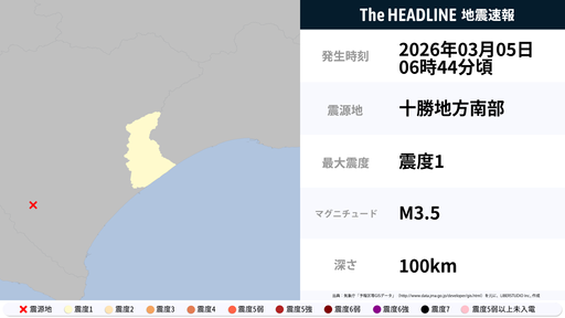 3月5日6時45分頃、北海道で最大震度1の地震を観測