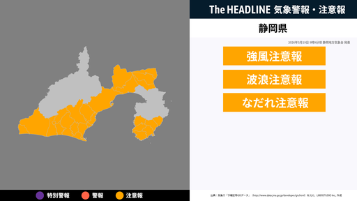 3月19日9時9分頃、静岡県に強風注意報・波浪注意報などが発表