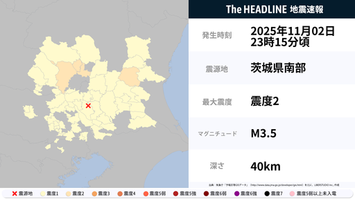 11月2日23時15分頃、茨城県・栃木県で最大震度2の地震を観測