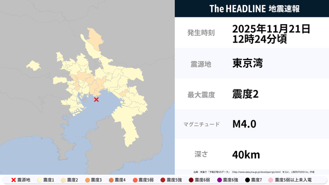 11月18日6時46分頃、東京都で最大震度1の地震を観測
