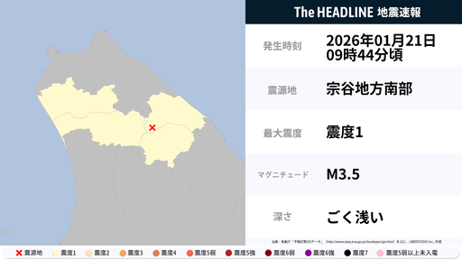 1月21日9時44分頃、宗谷地方南部を震源とするマグニチュード3.5の地震が観測された。最大震度1を観測したのは、北海道。