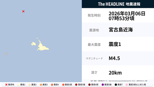 3月6日7時54分頃、沖縄県で最大震度1の地震を観測
