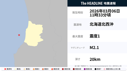 3月6日11時33分頃、北海道で最大震度1の地震を観測