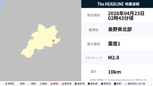 4月21日22時39分頃、長野県で最大震度1の地震を観測