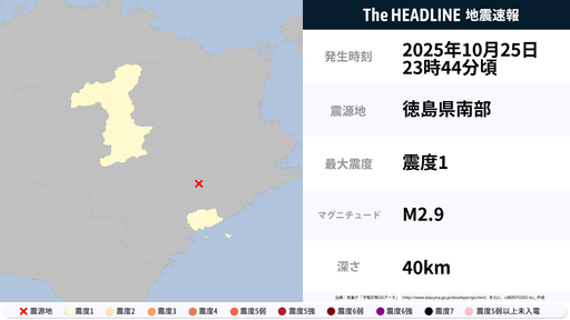1月1日10時49分頃、徳島県で最大震度1を観測する地震がありました。