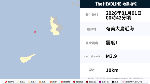 2月20日12時15分頃、鹿児島県で最大震度1を観測する地震がありました。