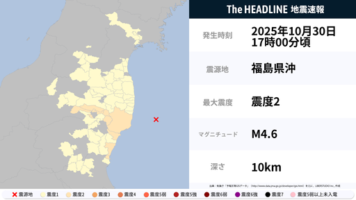 10月3日7時45分頃、岩手県で最大震度2の地震を観測