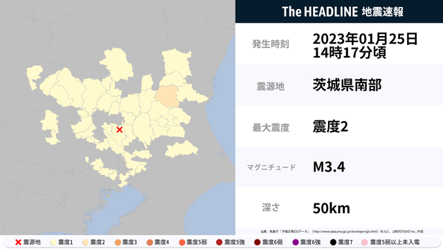 1月25日14時17分頃、茨城県で最大震度2の地震を観測