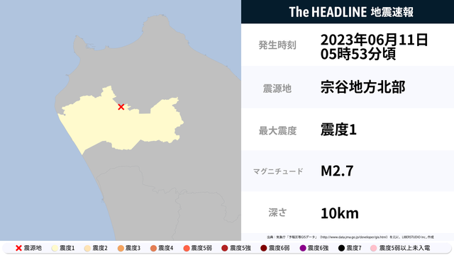 6月11日5時53分頃、北海道で最大震度1の地震を観測