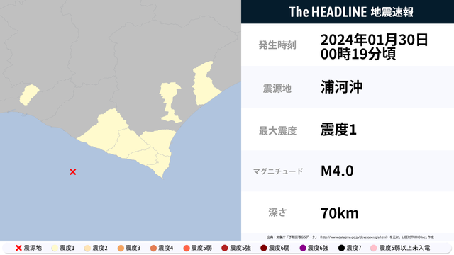 1月30日0時19分頃、浦河沖を震源とするマグニチュード4.0の地震が観測された。最大震度1を観測したのは、北海道。