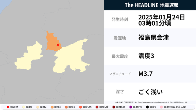 1月24日3時1分頃、福島県で最大震度3の地震を観測