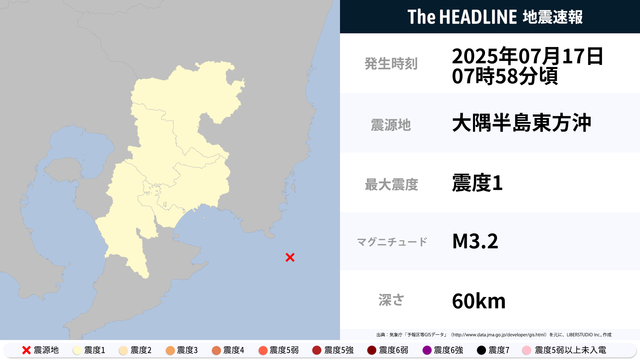 7月17日7時58分頃、大隅半島東方沖を震源とするマグニチュード3.2の地震が観測された。最大震度1を観測したのは、宮崎県・鹿児島県。