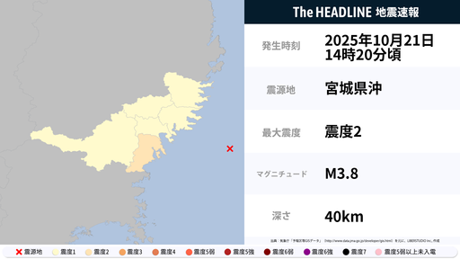 10月21日11時8分頃、北海道で最大震度1の地震を観測