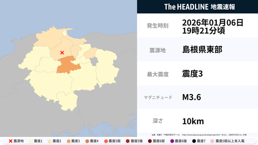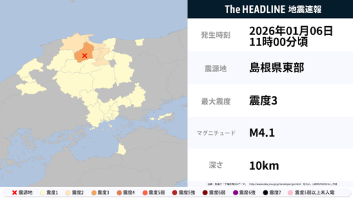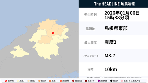 11月20日10時35分頃、島根県東部を震源とするマグニチュード2.7の地震が観測された。最大震度1を観測したのは、島根県・広島県。